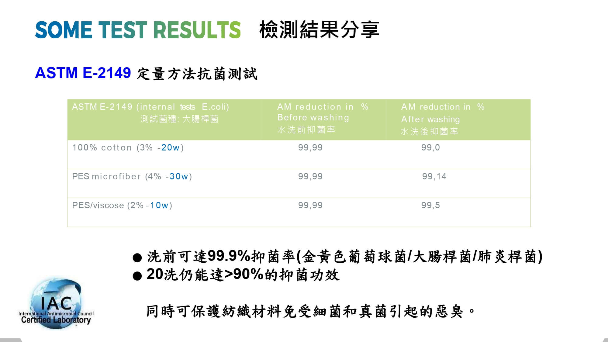 該產品是目前織物市場上首見 100%來自天然同時兼具耐洗性的抗菌技術產品。