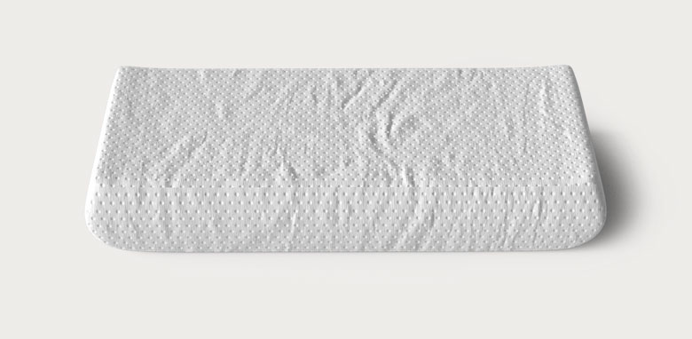 有別於高回彈性的材質,親水棉材質以無反作用力吸附頭頸壓力, 高密度枕芯柔緩包覆貼合頭頸曲線,便能毫無壓迫異物感的紓壓入眠。