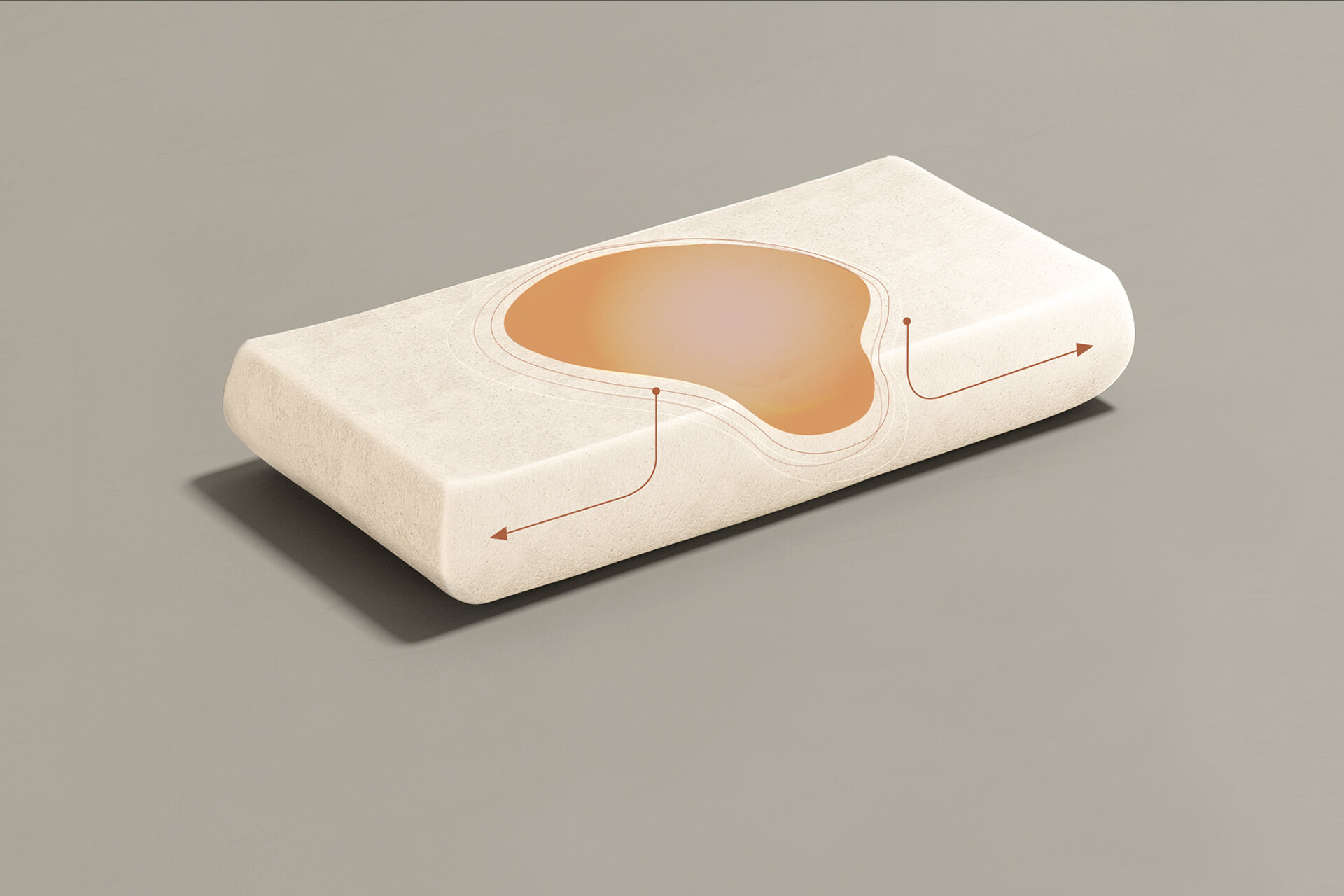 當枕芯和人體接觸時,溫度的傳遞會使枕芯依照每個人的頭頸曲線,朔造出安穩的支撐形狀,而枕芯未接觸到人體溫度的部分, 依然提供均勻充分的的支撐力,使頭頸呼吸道形成最佳比例。
