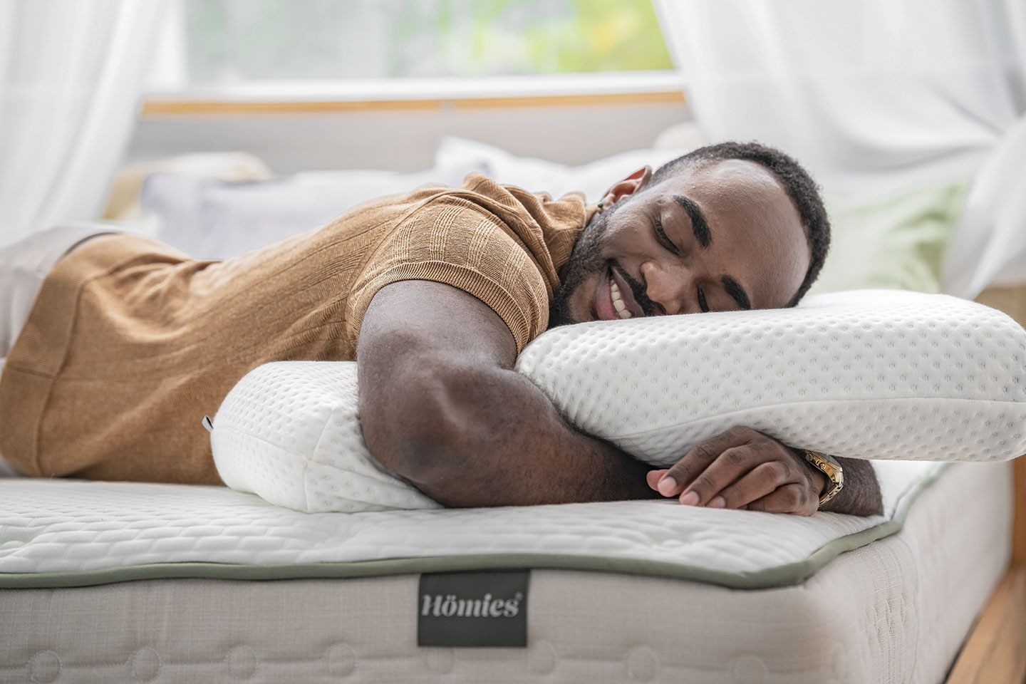 台灣絕大多數時間都處於70%以上的高濕度狀態;濕度一高,黴菌及塵蟎就容易滋生,誘發過敏、氣喘、慢性支氣管炎等呼吸道症狀。 為了打造最佳睡眠圈,「眠思枕-平面型」枕芯使用親水棉原料,在睡眠期間不但有效調節濕氣、達到抗菌防瞞的效果,透過高溫炭化細孔結構亦能改善環境中的霉味等異味分子。